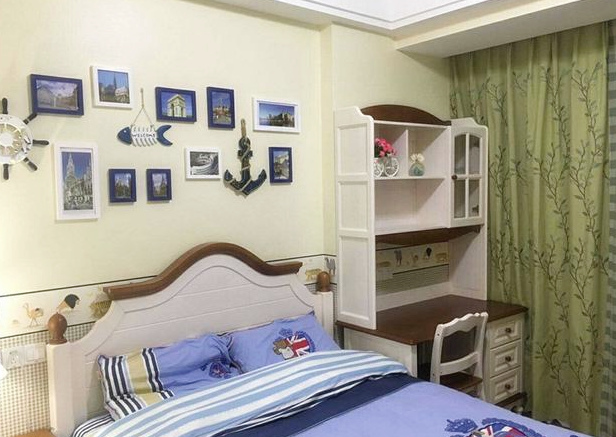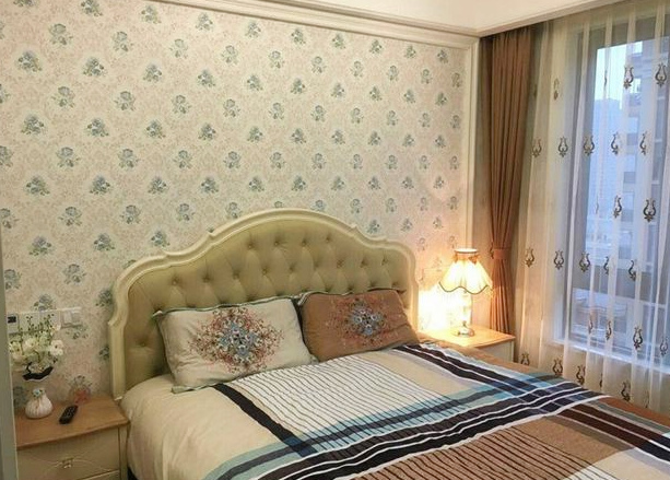 次卧室,公婆的房间,床头背景墙贴了壁纸
