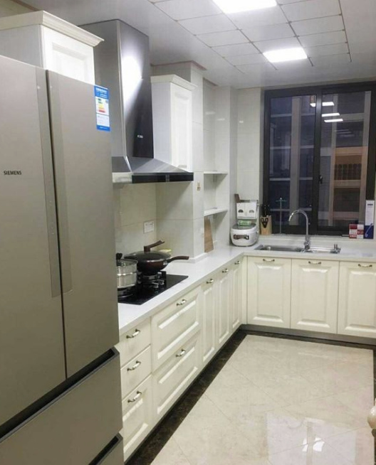这是厨房,厨房还算比较宽敞,装修是简洁明快的浅色调,让人一看就神清气爽、心情愉悦