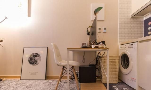 房子不大,却装饰得非常充实,属于暗色简约风,很符合现在大多数男生的审美,小房子内所有功能区应有尽有。