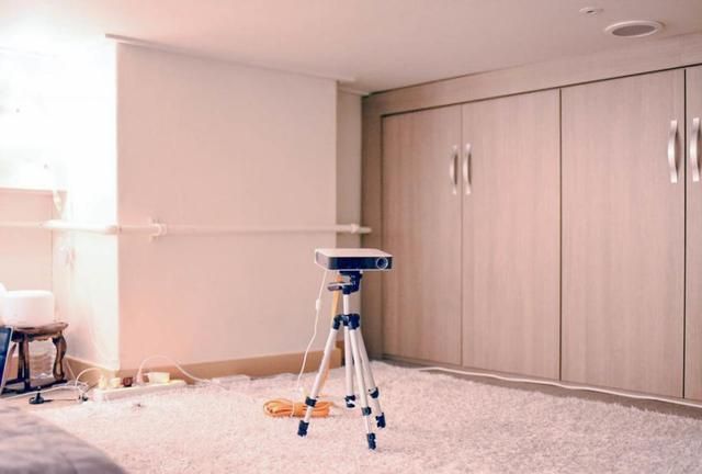 卧室里竟然还利用投影仪制作了个小影院,冬天躺在被窝里看电影是个不错的选择。