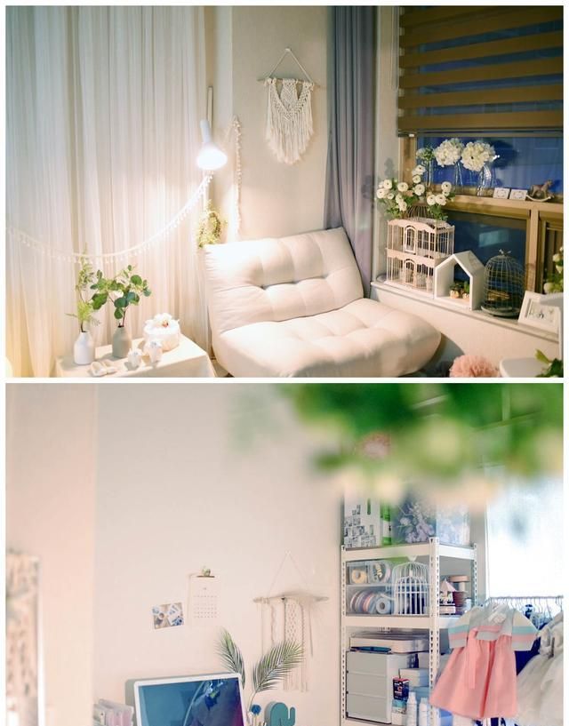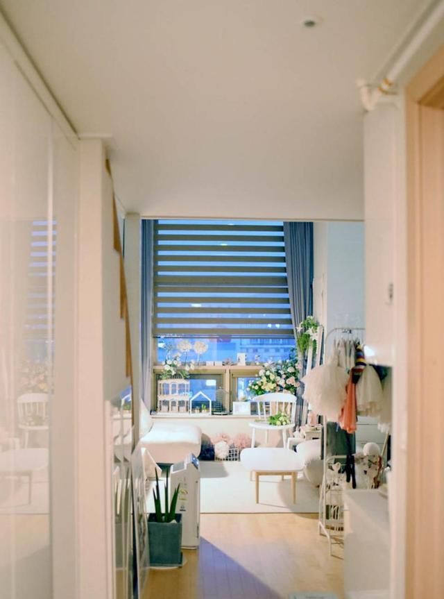 她家的客厅简直让我心动,超好的采光,厚厚的地毯,舒适的沙发,满眼的鲜花绿植,女儿平时喜欢拍照,一看这个角落就是经过精心布置的,绝佳的拍照圣地!