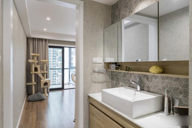 功能区空间的设计也很新颖,卫生间巧妙地采用了玻璃作为墙体隔断,通透明亮,既划分了功能空间,又减轻了视觉上的拥挤感。本案西安二手房翻新装修改造公司设计师在色彩上,采用了高级灰+灰绿色组合,在高级中透露着异域风情,整个空间充满了优雅浪漫的设计感。